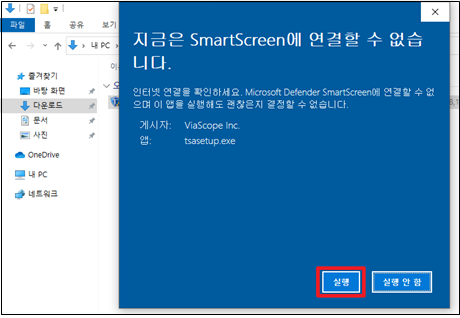 3다운로드 된 파일을 설치할 때 아래와 같은 메시지는 ‘실행’ 선택